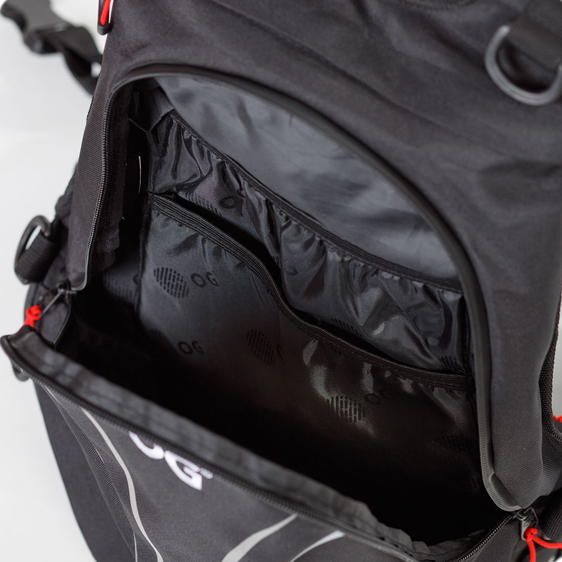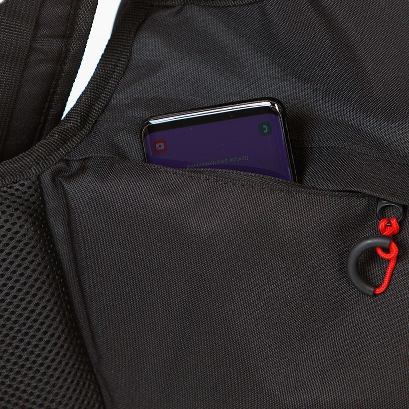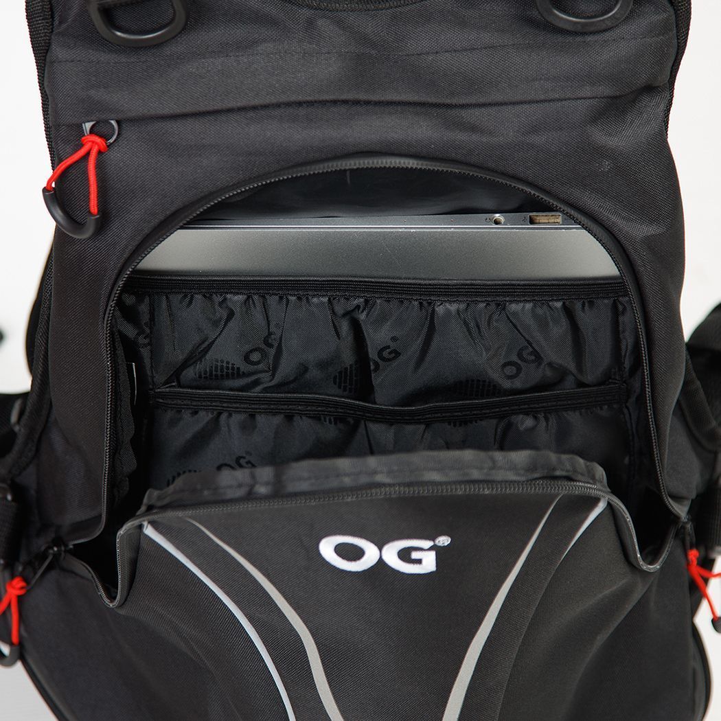 DHT System, Anti-Diebstahl-Fach, Resistent gegen Wasser/Abnutzung, Wasserdichte Reißverschlüsse, Wasserdichte Regenhülle, Laptopfach bis 13 Zoll, Reflektierende Streifen, Verstellbare Brust-/Hüftgurte, Trolley-Halterung.